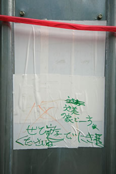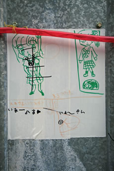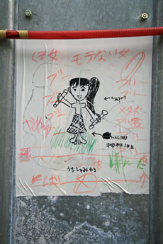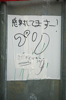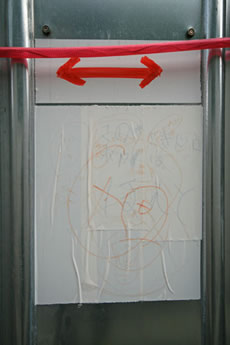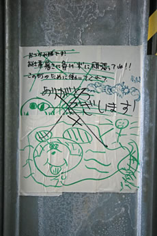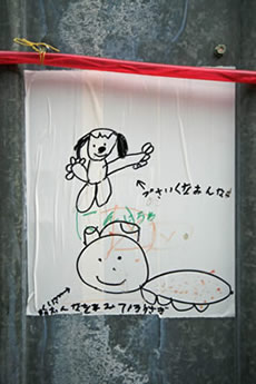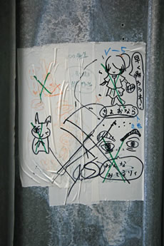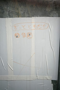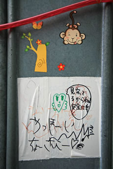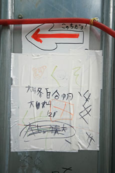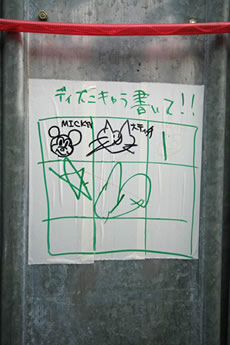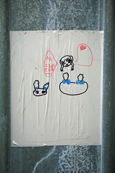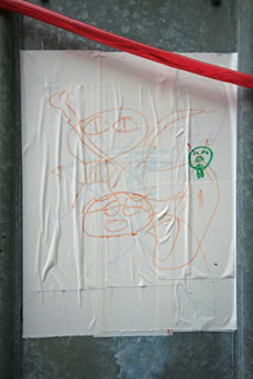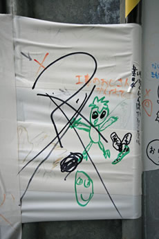 ◆「わが家の前の工事現場のステンレスの壁に子供達が絵を描いています。