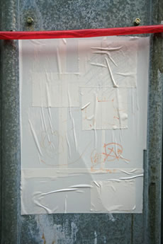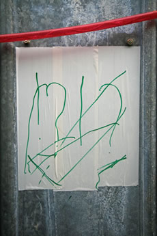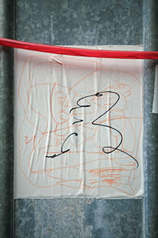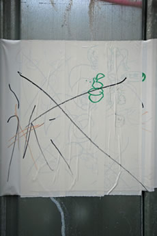 2日目も盛況(公開制作のこと)。昨日2時間、今日2時間半、なんとなく完成。残りの時間(4時迄)はトークに切り換え。Y字路が次第に溶けかけ、崩れかけ、消えかけの方向に来た。