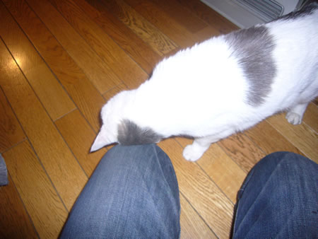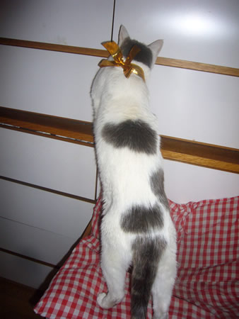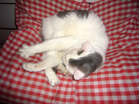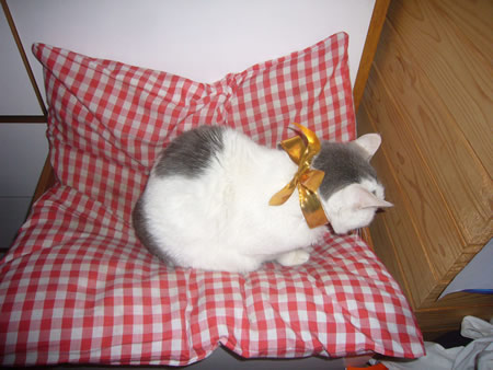 事務所の周辺の野良猫の一匹、黒タマが最近部屋に入ってきて、椅子に腰掛けて疲れを癒しています。野良だったので鳴く機会がなかったらしく、ピェ-、ピェ-と変な声で、目下ウグイスみたいに鳴く練習をしています。でも音痴は生まれつき直らないかも。